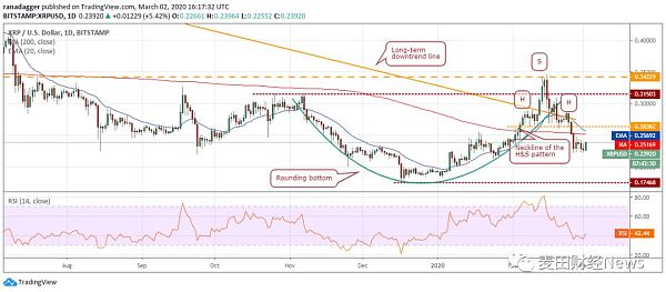 瑞波币在过去几天成功守住了0.22美元水平,这对多头来说是一个好消息。接下来,XRP可能会向上移动到20日均线,并进一步回升至头肩形态的颈线位置。不过,我预计空头将会坚守0.25美元至0.26362美元的阻力区间。