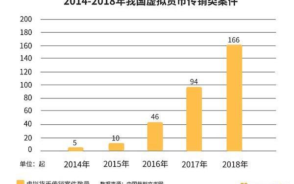 据中国裁判文书网统计,2018年,我国虚拟货币的类案件多达166起,2017年为94起;2016年为46起;2015年为10起;2014仅有5起,而近几年的案件年均增长率超过100%。
