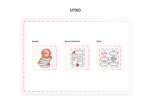 每个UTXO在它所附加的数据方面保存自己的个体状态。当数据和资产从一个UTXO移动到另一个UTXO时,它们会经历状态转换,这可能导致它们分裂、累积、被删除或与来自其他UTXO的其他资产/数据一起使用。借助多个输入UTXO和多个输出UTXO的潜力,这些高阶动作允许对更复杂的逻辑进行编码。这最终成为开发dApp的关键基本构建块之一。