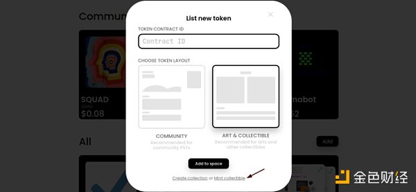 转到verto.exchange/space并连接你的钱包(需要ArConnect)。单击All旁边的“添加”,在代币和社区下: