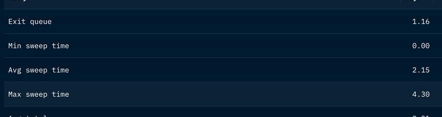 验证者扫描是指验证者计划提议下一个区块时进行的。验证者还负责构建最多包含16笔取款的取款队列。假设没有遗漏的插槽,每天最多可以处理115,200笔取款。因此,对于当前活动的约60万个验证者,每次验证者扫描最多需要4.3天,平均需要2.15天才能完成。
