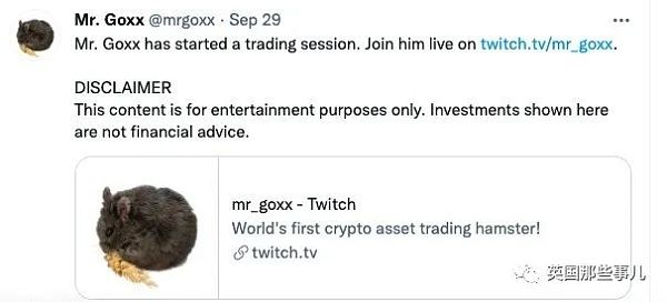 它叫Mr Goxx,职位是:世界上第一只仓鼠加密货币交易员。