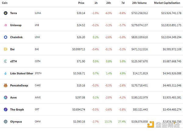 ?DeFi项目锁定资产前十排名及锁仓量,数据来源:Debank