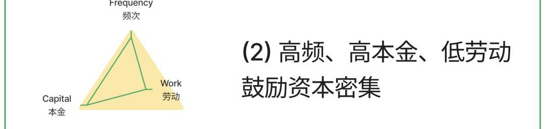 在最后两种「低频,高本金,低劳动」和「低频,低本金,低劳动」场景中,参与者贡献的价值过低,我们认为这样的场景暂时不具备意义。