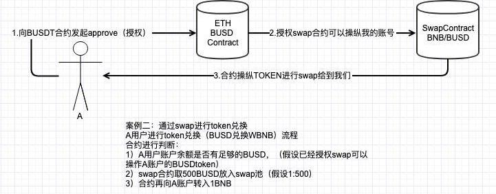 案例二:通过swap进行token兑换A用户进行token兑换流程合约进行判断: