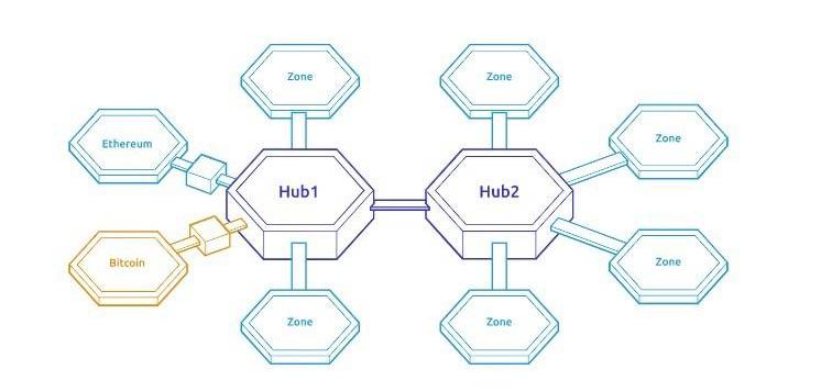 Cosmos使用名为Hub的主链,而其他称为Zone的链与该Hub主链进行交互,但每个Zone链都有自己的验证者。