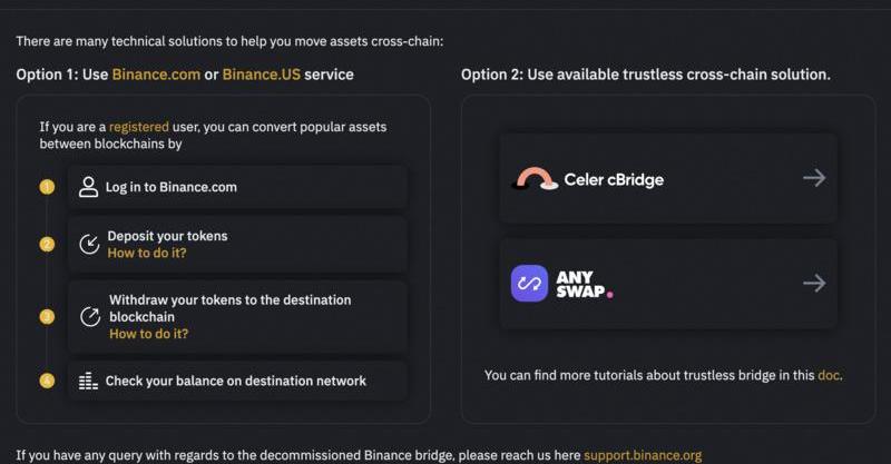 在业务量激增的同时,cBridge也赢得了较好的市场口碑,在BSC官方跨链桥BSCBridge因发展规划原因下线之时,币安官方向用户推荐了两款替代服务,其中之一就是cBridge。