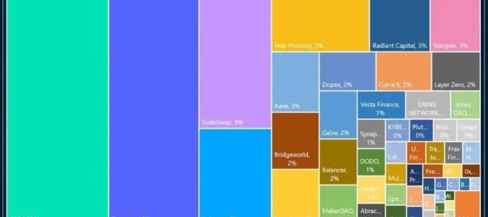 空投给DAO的1.13亿$ARB分配如下:GMX能获得22%代币,后续可能分发给GMX交易用户。Treasure_DAO能获得19%的代币,后续可能分发给各游戏用户及核心NFT持有者。SushiSwap能获得9%,应当也是给交易用户了。