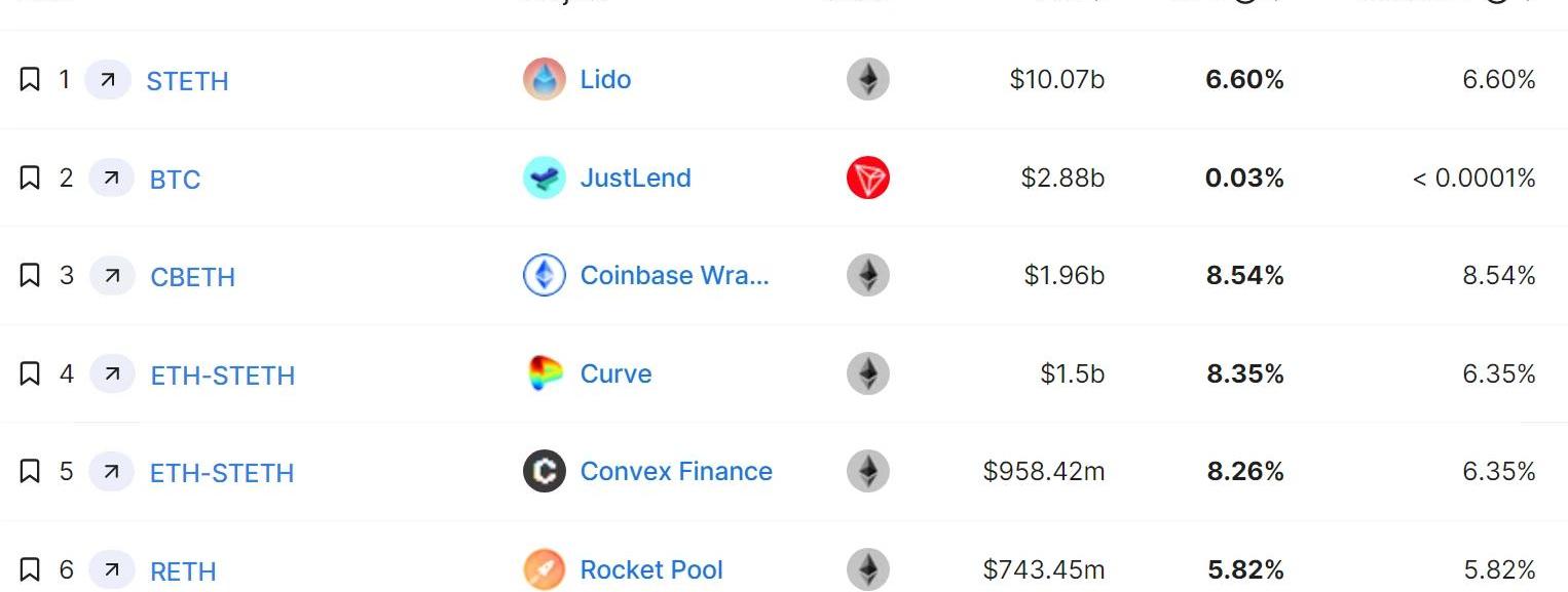 图4.DeFiyieldsranking(来源:Defillama)LST代币已经占总抵押量的65%左右。而这些抵押衍生代币,在过去两年的时间内,出现过大幅度的折价。目前,由于上海升级的临近,LST整体流动性较好。提款开放对LST价格回归是一个利好,但同时也很考验各个LSD项目方的风险管理能力和提款流程设计。