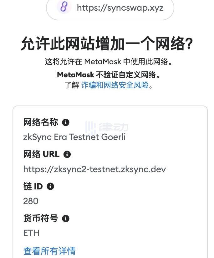 首先,需要去官网领取测试币。BlockBeats注:需要连接推特转发推文,没有头像的或新的推特账户无法领取。若第一种方法无法领取,另一个方法就是通过zkSyncEraGoerli官桥从ETHGoerli跨桥到zkSyncEratestnet,注意跨桥Gas较高,过程需要约5min。BlockBeats注:该过程需要注意,网络显示为EthereumGoerli,切记勿切换网络为Ethereummainnet。