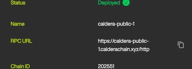 4.点击之后,Caldera会给我们一个已部署测试网的详细信息。