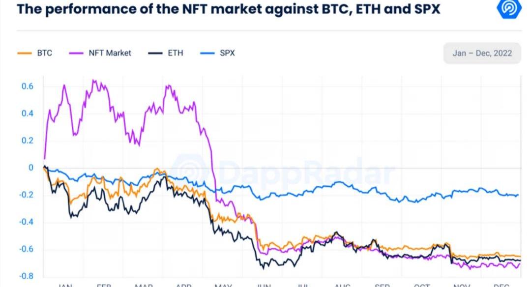 随着美联储加息和一系列暴雷事件,Crypto迎来了又一轮深熊。将时间回拨到18年,ICO被监管之后,Crypto行业市值下跌80%,随后DeFi创新出现,Crypto再次将上一轮周期的ATH刷新3倍。得益于Blockchain的高透明度和极佳的资金效率,Crypto行业在以极快的速度进行自我纠错和迭代。同样地,NFT市场也以极快的速度进行一轮又一轮地洗牌,rug和建设:22年NFT市场交易量不断萎靡,在11月曾有多天的日交易量不到1,500万美元;在这轮熊市之中,作为蓝筹代表的BAYC已经跌去了54%的价格,最低点仅剩49E;DappRadar分析的81个NFT系列在22年平均跌幅为59.6%,市值从年初的$9.3B跌到了目前的$3.7B;BendDAO推出之后也因为BAYC价格的一次极速下跌经历了一次流动性危机,质押池几乎清空;BAYC推出的APEcoin从ATH的$26.7跌至目前的$5.2,跌幅80%。2022年我们也迎来了NFT用例的大爆发,从BendDAO提出的PeertoProtocol的借贷池到sudoswap的NFTDEX设计,NFT的市场日趋成熟:2022年,NFT集合的数量相较于2021年的数量有大幅上升,年初时仅有3.93万个NFT系列,目前增加至22.6万个,增幅达475%;在DeFi用例上:交易平台不断创新,Looksrare和x2y2通过自己的代币激励用户TradetoEarn,对Opensea进行了吸血鬼攻击,Blur推陈出新使用了BidtoEarn给整个NFT市场带来了更深的流动性和更窄的spread,sudoswap的vAMM设计让NFT的购买更趋向同质化代币;借贷平台如BendDAO提供了PeertoProtocol的借贷模式更高效地释放了NFT的流动性;衍生品市场也有了新的突破:NFTPerp推出了以NFTFloorPrice作为index的合约交易;Hook推出了NFT期权产品,让用户对冲持有的NFT价格下跌的风险。