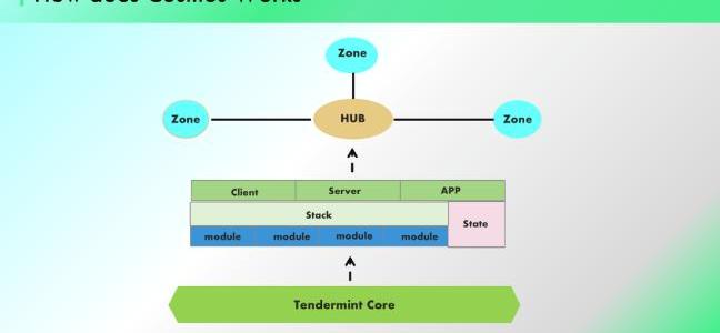 说人话就是,以太坊类似于企业,各事业部都要遵守公司规定经营业务,部门之间可以相互协作并且资源共享,所有工作都在同一网络上执行。Cosmos更像是产业园区,各家公司入驻后可以根据业务需求制定工作准则,自谋发展生路。园区负责提供基础设施和生产工具。Cosmos组成:SDK、IBC、TendermintCosmosSDK:公链建设工具包与模版库,类似Polkadot的Substrate。CosmosSDK将应用可能需要的功能拆分成不同的Module,这样开发者只需要结合应用链需求集成即可。IBC:公链之间的通讯协议,为网络中所有Zone和Hub提供共识,发起链用户只需要上传账户签名以及MerkleRoot就可以验证交易,实现跨链的状态确认。CosmosHub:Zone通过IBC依靠Hub实现相互连接,如果一个Zone链接了足够多的生态,它就可以被认定为Hub。TendermintCore:共识机制引擎,也就是节点通过何种准则来确定记账顺序。Tendermint的局限性也很明显:Cosmos网络节点无法验证不同共识协议的异构区块链,因此无法实现异构链兼容。
