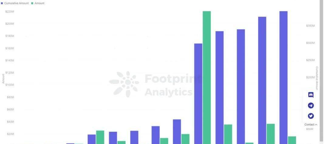 回顾过去几个世纪,世界反复出现过“资本洼地”现象,哪个国家成为全球的资本洼地,哪个国家就具备了崛起的条件。资本端的流向往往可以总结出一些热点和新趋势。2017年前后,大批区块链+社交方向的项目批量涌现,曾经出现过Steem、Voice、ONO、QunQun、GSC、YeeCall、NRC、SwagChain、火信、TTCProtocol等明星项目。但是在早期不成熟的市场环境、有限的用户参与、生态模型局限性等问题,很多项目已销声匿迹。2020年之后,DeFi时代开启,NFTFi、GameFi相继爆发,在开放式金融理念以及流动性挖矿方式的影响下,SocialFi1.0也开始了从「Social+Finance」到「Social+DeFi」的转变。2021年前后,更大范围内的Web3玩家加入新时代的浪潮中,更具有社交和娱乐属性的应用类项目初出茅庐。以区块链世界的变化速度而言,SocialFi亦应有日异月殊之变。根据FootprintAnalytics的数据,2020年市场上SocialFi的融资额高达3.92亿美元。而在2021年单单9月的SocialFi赛道的融资就达到了2.2亿美元,起先是上半年5月社交凭证项目ProjectGalaxy的种子轮融资以及社交DAOFriendswithBenefits开始融资,截至9月初以1亿美元的估值完成千万美元的融资,其次有陆陆续续的社交头部项目集中在下半年开始融资,比如2021年9月,SocialFi平台Torum的30万美元融资、11月,MonacoPlanet的300万美元融资和CyberConnect的1000万美元融资、12月,SocialFi平台BBSNetwork的150万美元融资、和Web3基础设施RSS3的新一轮融资均分别对社交赛道的融资金额添加了浓墨重彩的一笔。