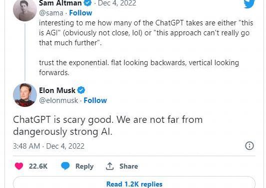 在互联网上掀起了一场“AI风暴”的ChatGPT究竟是什么?据官网介绍,计算模型GPT-3.5支持的通用聊天机器人ChatGPT,能回答连续性的问题、承认自己的错误、质疑不正确的假设,甚至拒绝不合理的需求。从写剧本、写诗、设计游戏,到给程序找bug,乃至制定一份“毁灭人类”的计划,这个AI能做的事情超乎想象。美国企业家马斯克询问了ChatGPT如何设计Twitter,AI回答称:“为了使用户更容易查看线程互联网对话并与之交互,你可以将线性一维界面转换为二维无限网格。”12月5日,OpenAI创始人兼CEO阿尔特曼(SamAltman)发布推文表示,ChatGPT用户数已突破了100万。许多人已经测试了聊天功能,并一直在社交媒体上分享他们的交流。ChatGPT似乎也给科技亿万富翁埃隆·马斯克留下了深刻印象,他在推特上写道:“ChatGPT好得吓人。我们离危险的强大人工智能不远了。”