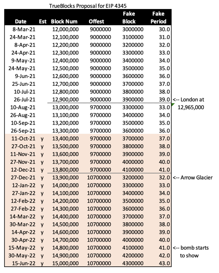 你可以从上面这张图看出,无论我们早点还是晚点实施 “Arrow Glacier” 硬分叉,只要我们使用 1050 0000 的偏移量,那就对下一次难度炸弹爆炸的时机没有任何影响。