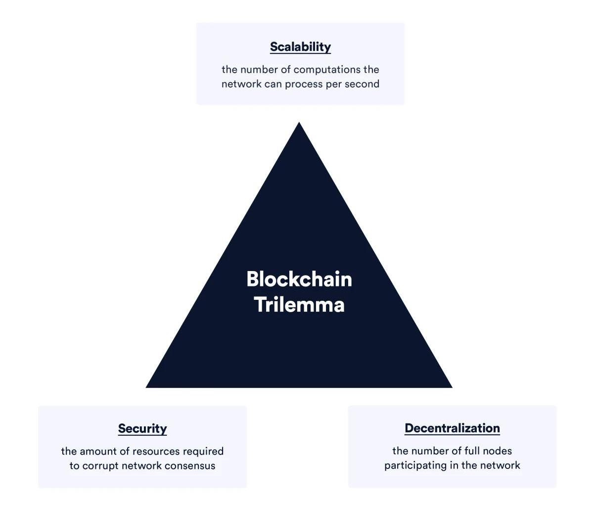 如今Web3最令人诟病的地方就是主流公链的扩容和延迟问题。我在之前的一篇关于区块链信任模式的文章中提到过,很多人都认为扩容就是提高交易吞吐量。然而更全面的理解应该是:区块链扩容既需要提升交易吞吐量,又需要维持较低的区块链账本验证成本。虽然有些区块链的吞吐量相对较高,但仍存在上限,而且这些区块链往往不得不在去中心化、安全和可靠性三个方面做出权衡。