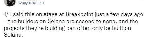 在Binance可能最终收购FTX的消息传出后,SOL代币曾短暂上涨,但在Binance以消费者资金处理不当的指控和监管机构的调查为由退出交易后又继续下跌。尽管SOL最近面临挑战,但SolanaLabs的联合创始人AnatolyYakovenko在一条推文中重申了他对Solana网络的看涨立场。