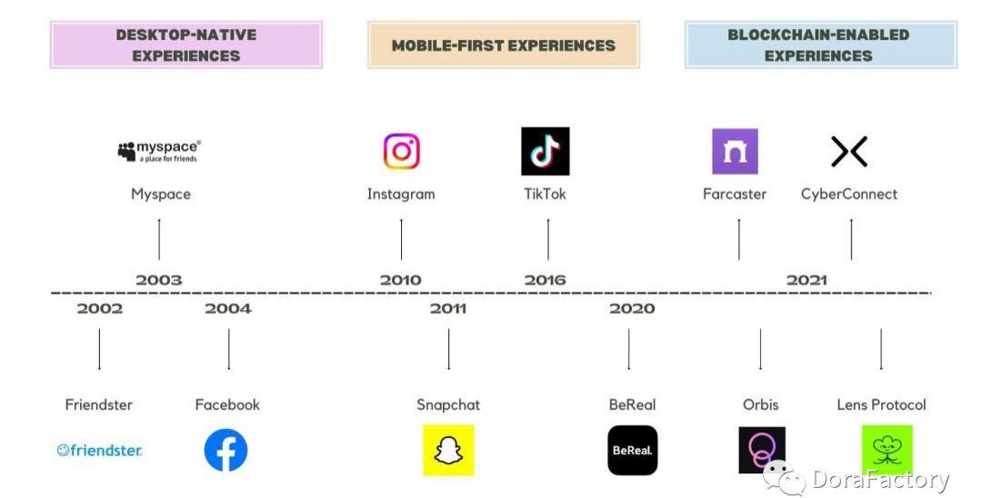 移动技术的进步使人们能够分享实时、即时的体验。Instagram的社交照片共享应用程序于2010年在iOS上推出,几个月后iPhone4为消费者提供了改进的相机。作为默认公众,它促成了品牌、模因和影响者的崛起。Snapchat(2011)受益于先进的相机功能,为捕捉真实、不完美瞬间的消失照片和视频提供动力。TikTok(2016)通过增加手机屏幕尺寸和分辨率来利用全屏UI。此外,该应用程序的内置录制和编辑功能使上传内容变得容易,而算法对内容的优先级为创作者提供了在没有大量追随者的情况下快速传播可能性。BeReal(2020)利用2016年首次在iPhone7Plus中引入的双摄像头功能来建立更亲密、更真实的社交联系。