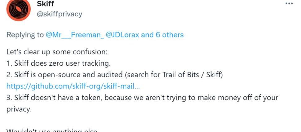 需求权衡:引入DAO治理模式,实现去中心化管理基于IPFS的半永久存储效率=成本>隐私主要痛点:ENS作为邮箱地址,会导致邮箱地址实质上变成半永久的财产,ENS到期后,将无法继续收到邮件SkiffMail