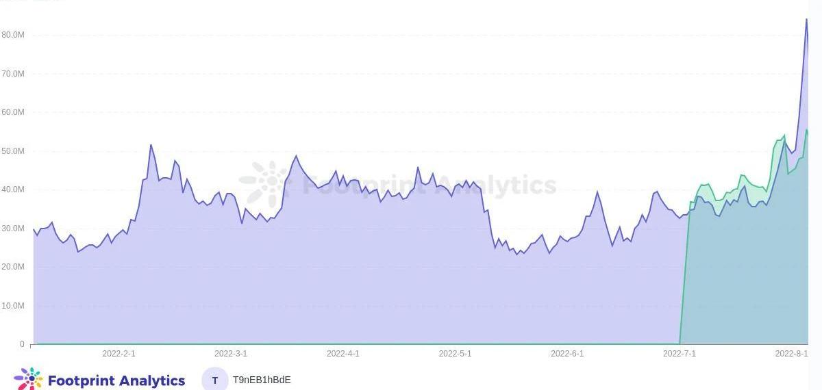 FootprintAnalytics-SHIBDailyMarketCapShibaInu被设计成一种memecoin,它在这方面取得了成功。该token在社交媒体上获得了大量的关注,甚至得到了一些名人的认可。从2021年3月27日开始,它拥有约7300名关注者,到2022年8月增长到340万关注者。在17个月内,其Twitter关注增长超过58,804%以上。此外,与去年推出的数百种memecoins不同的是,SHIB是一种功能性加密货币,可以用来购买商品和服务。类似著名的科技公司,如Newegg、Twitch和AMC影院。SHIB是Shiba生态系统的基础性加密货币。该token给ShibaSwapDEX提供动力,并用于推动生态系统中的其他应用。ShibaInu生态系统