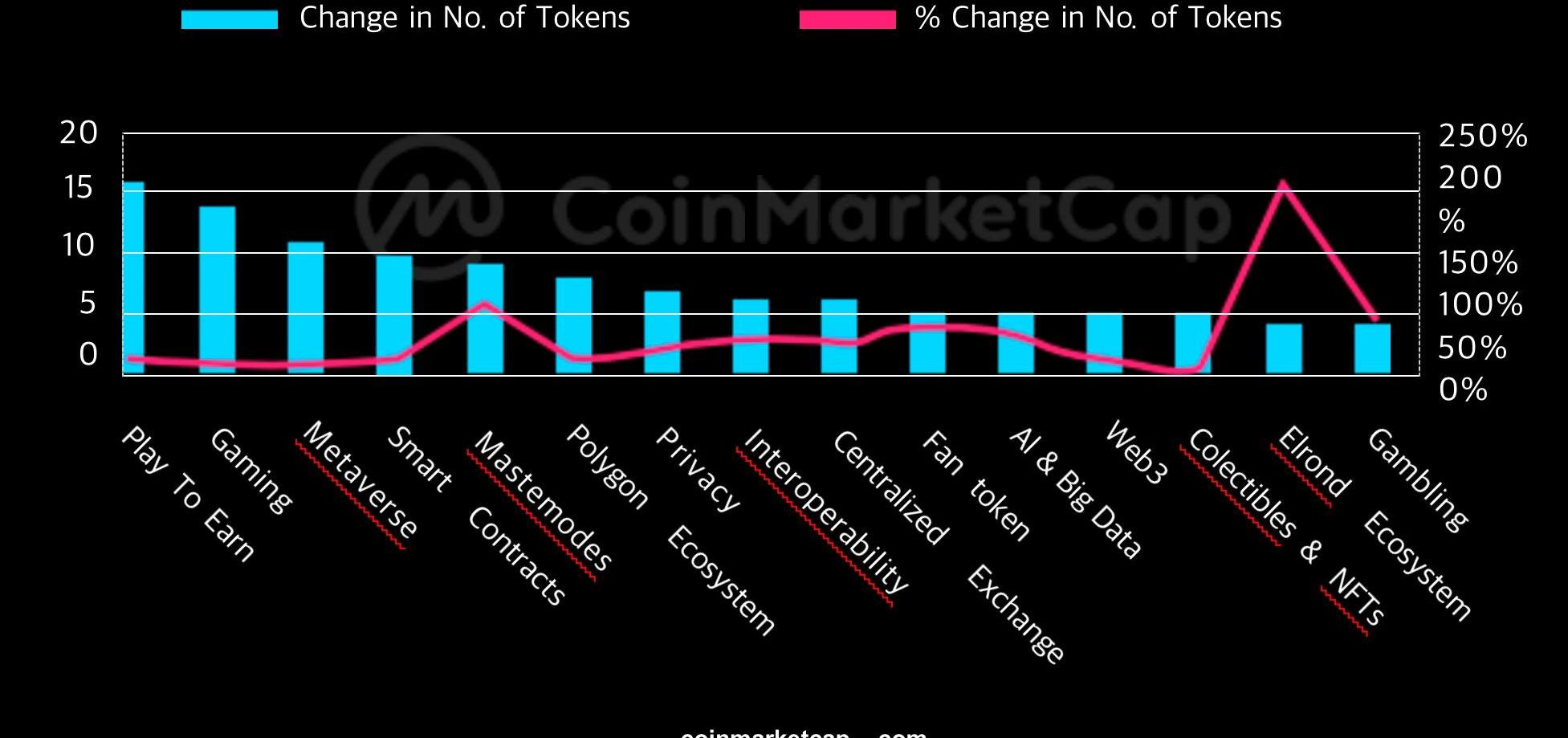 根据CoinMarketCap的上线数据和市场情绪,CMC团队发现人们对L2解决方案的兴趣明显上升。需要注意的一个网络是Arbitrum,它是以太坊的第二层扩展解决方案,还没有推出自己的代币。8月推出的Nitro升级使开发人员更容易在网络上工作,并吸引了DeFi社区的兴趣,使其TVL成为L2中最大的一个。另一个吸引人的L2解决方案是BNBChain的zkBNB,这是一个基于零知识验证的扩展解决方案,旨在解决GameFi和社交Dapp领域的问题。zkBNB测试网于9月初上线,计划在2022年底前发布主网。如果对L2的总体兴趣继续上升,我们预计在CoinMarketCap上上线的L2相关货币和代币的数量将上升。链的优化