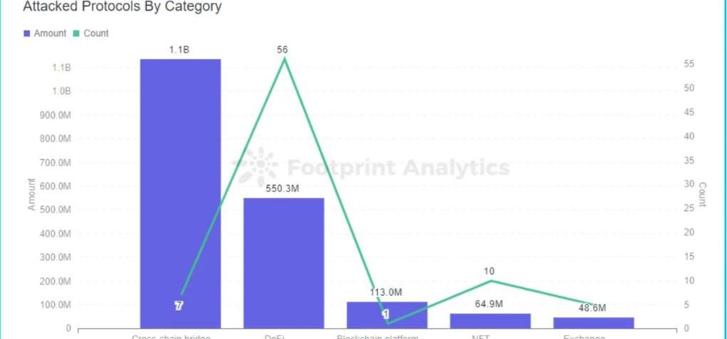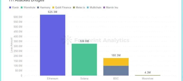 2022年上半年,共发生了7起跨链桥攻击事件,共计损失金额约11亿3599万美元,占了上半年总损失金额的59%。