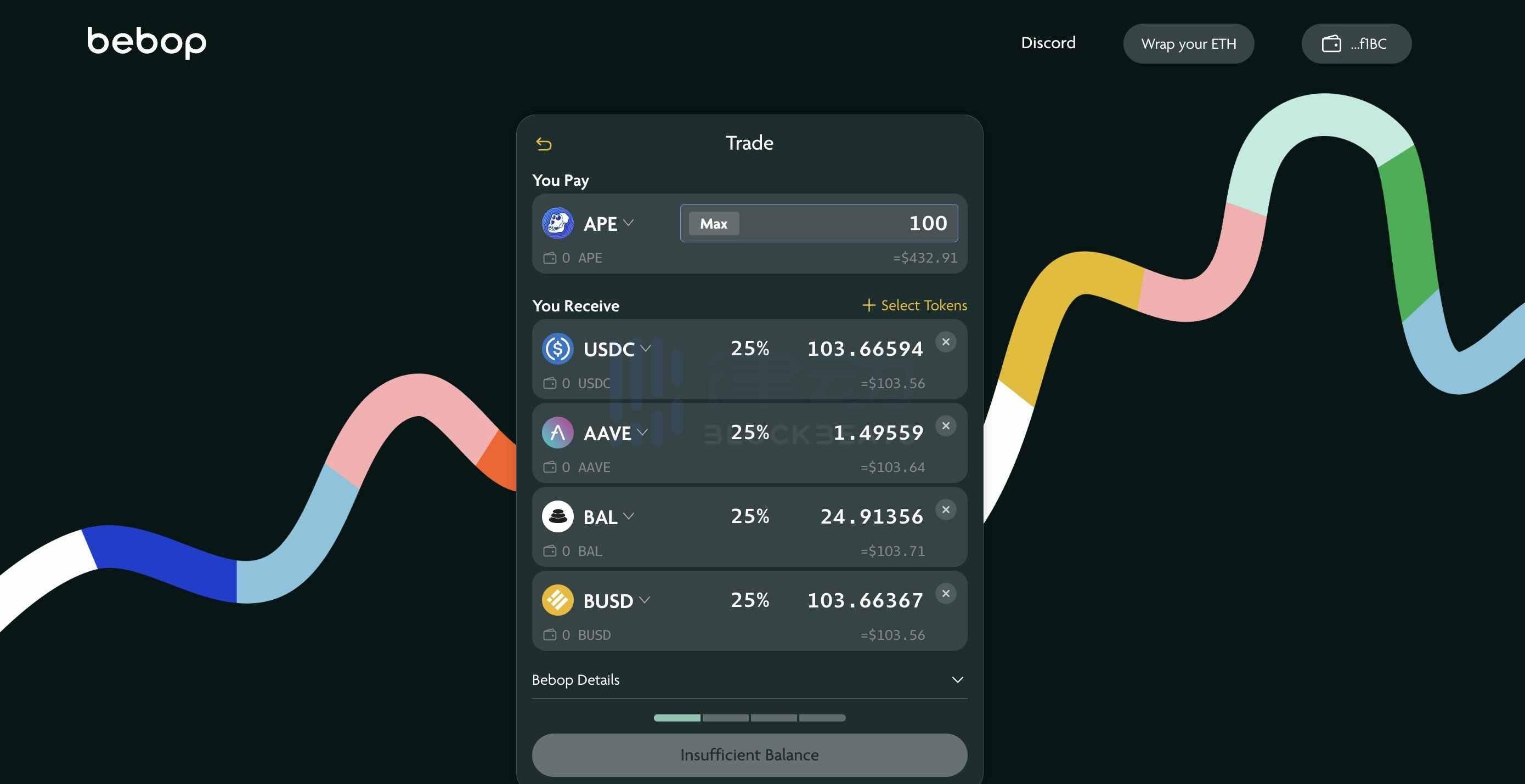 Bebop是一个零滑点去中心化交易平台,并支持一种资产交易为多种资产,反之亦然。UI和UX都很不错。