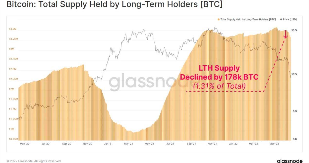 熊市的骨牌效应推进到一个新阶段。本周流入交易所的BTC数量处于2018年以来的最高水平。1年以上的长期持有者减少了17.8万枚BTC,相当于他们总持有量的1.3%。这反映出即使是强势持币的人群中,也存在大量的恐慌。处于盈利的持币地址下降到只有49%,历史上熊市的最低点的盈利地址在40-45%之间。