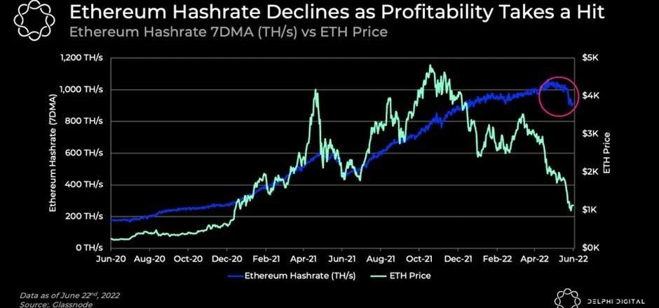 与价格相比的以太坊哈希率该公司还强调,以太坊挖矿的盈利能力受到了当前熊市的严重影响,由于价格下跌,矿工现在从他们的业务中赚取的利润更少。能源成本的上升使情况更加复杂;能源价格指数目前处于五年来的最高水平。他指出:"一旦以太坊切换到权益证明,这应该会严重影响市场,因为它将减少ETH的供应,消灭了目前以太坊挖矿,因此矿工可能被迫出售"。原地址