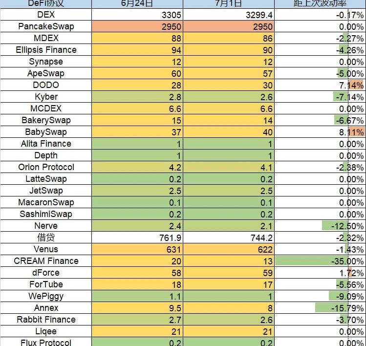 本周整体占比变化均极小,仅BSC链出现0.37%的微幅增长。各链协议锁仓量情况
