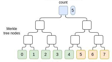 通过发布单个Merkle根和链上最大计数,你可以提交有限数量的认证。在本例中,只有5个可能有效的Merkle分支可以满足证明检查。读者可能会注意到它与链外扩容方案Plasmachain在概念上的相似性。常识