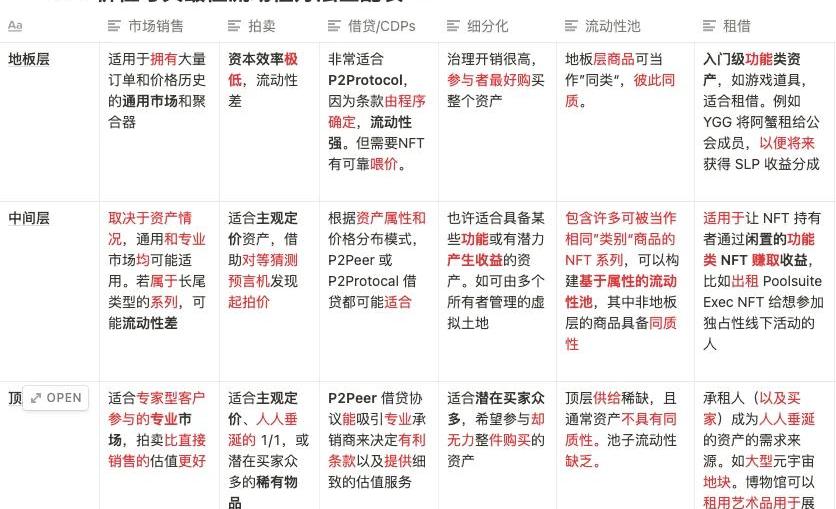 地板层:标价位于地板价至地板价*1.4之间的商品。地板层通常由一个系列内50-75%的商品组成,占该系列市值的25-50%。它们的数量和同质化特性使其适合流动性池,可以有效地充当”场内自动做市商”。用户可以从场内资产的交易活动中获利,并享有与其他价位相比最深的流动性。中间层:标价位于地板价*1.4至地板价*2.5之间的商品。中间层通常由一个系列内20-40%的商品组成,占该系列市值的10-20%。就目前的情况来看,中间层商品可能最无利可图,因为它们的流动性低于地板层,并且与顶层相比反弹可能性也较小。众数处于中间层的NFT系列,其用户中的许多人可能对资产本身的属性或功用而非价格更感兴趣。例如,虚拟土地可能太小或位于不赚钱的位置,而大型、高流量的地块太贵或不出售。因此,土地买家会搜寻位置、面积和价格俱佳的资产。如果事实证明,中间层包含一些“暂时性”的商品,例如由于地板增值或蓝筹贬值而被纳入的商品,那么这里可能就会成为投机和对冲操作的层级。