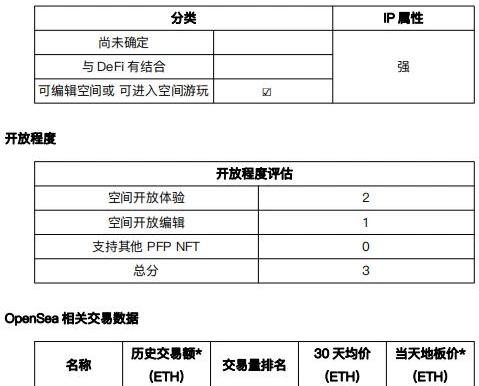 下面将按不同分类以及元宇宙开放程度,对上述项目做具体的分析。分类方式介绍:将对项目分为“可编辑空间或可进入空间游玩”,“与DeFi结合”,“尚未确定”三个大类别;同时将根据“具有本身明确世界观与故事性”和“开放性强、包容程度更高”分为强IP属性元宇宙以及弱IP属性元宇宙。元宇宙开放程度介绍:将根据是否可以“空间开放体验”,是否可以“空间开放编辑”,以及是否可以“支持其他PFPNFT”三个方面进行评估。其中可以“空间开放体验”得2分,否则为0分;可以“空间开放编辑”得1分,否则为0分,可以“支持其他PFPNFT”得2分,否则为0分。分类一: