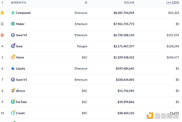 DeFi项目锁定资产前十排名及锁仓量,数据来源:Debank