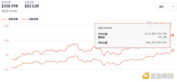 金色财经报道,根据最新数据显示,基于以太坊区块链的DeFi协议Curve锁仓量已突破150亿美元,创下历史新高,本文撰写时达到158亿美元,总用户数为88626。目前以太坊链上DeFi协议总锁仓量达到1083.2亿美元,同样创下历史新高。