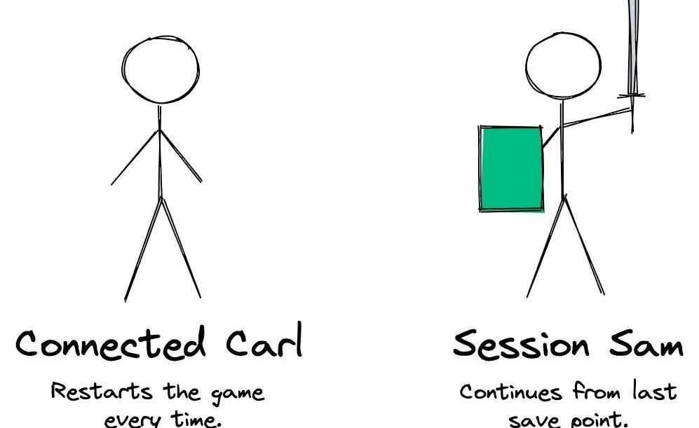 「连接钱包」这个按钮是现在dapp的主要功能。点击这个按钮,用户就开始了与Web3和区块链交互的旅程。通过连接钱包,应用程序可以知道你使用的是哪个账户;然而,仅此而已。你的钱包更容易了解你想用哪个账户来与智能合约互动、发送加密货币,甚至通过dapp对信息进行签名。连接钱包的功能非常简单——dapp对你「毫无记忆」,只是为简单的交互搭建了一个平台。当应用程序想要和用户进行更丰富的情境交互(contextualinteractions)时,比如加载用户的偏好或隐私聊天讯息,我们首先需要确保我们是在和该账户背后的实际私钥持有者对话,而不是某个假装对账户持有控制权的人。「连接钱包」不提供这种保证,但SIWE可以。换句话说,我们需要对用户进行身份验证,以便与他们建立一个session,然后安全地读写他们的数据。为了说明两者的区别,我举了以下两个例子——连接钱包的Carl和建立session的Sam:(译者注:Session在是一种用来在客户端与服务器端之间保持状态的解决方案。其基于思路是:客户端第一次访问时,服务器端生成一个sessionid返回给客户端,当然服务器端也会把这个sessionid存在内存中,客户端得到这个sessionid后,在后续的每个请求中会把这个sessionid传回服务器,这样服务器查询自己内存就知道这个客户端曾经访问过。Session可以用来实现用户的登录认证。服务器端生成的sessionid传回客户端后,往往会保存在cookie中,所以Session-based认证也称为Cookie-Based认证。来源)
