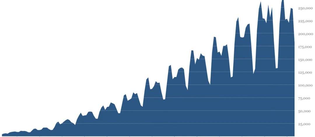 投机者的退潮抢购ArtBlocks的是真正的艺术爱好者,还是希望赚钱的NFT投机者?投机者一定占多数——ArtBlocks的许多经典作品很早就推出了,但是在2021年夏天NFT整体的投机潮中才获得了更高的单价和交易量。