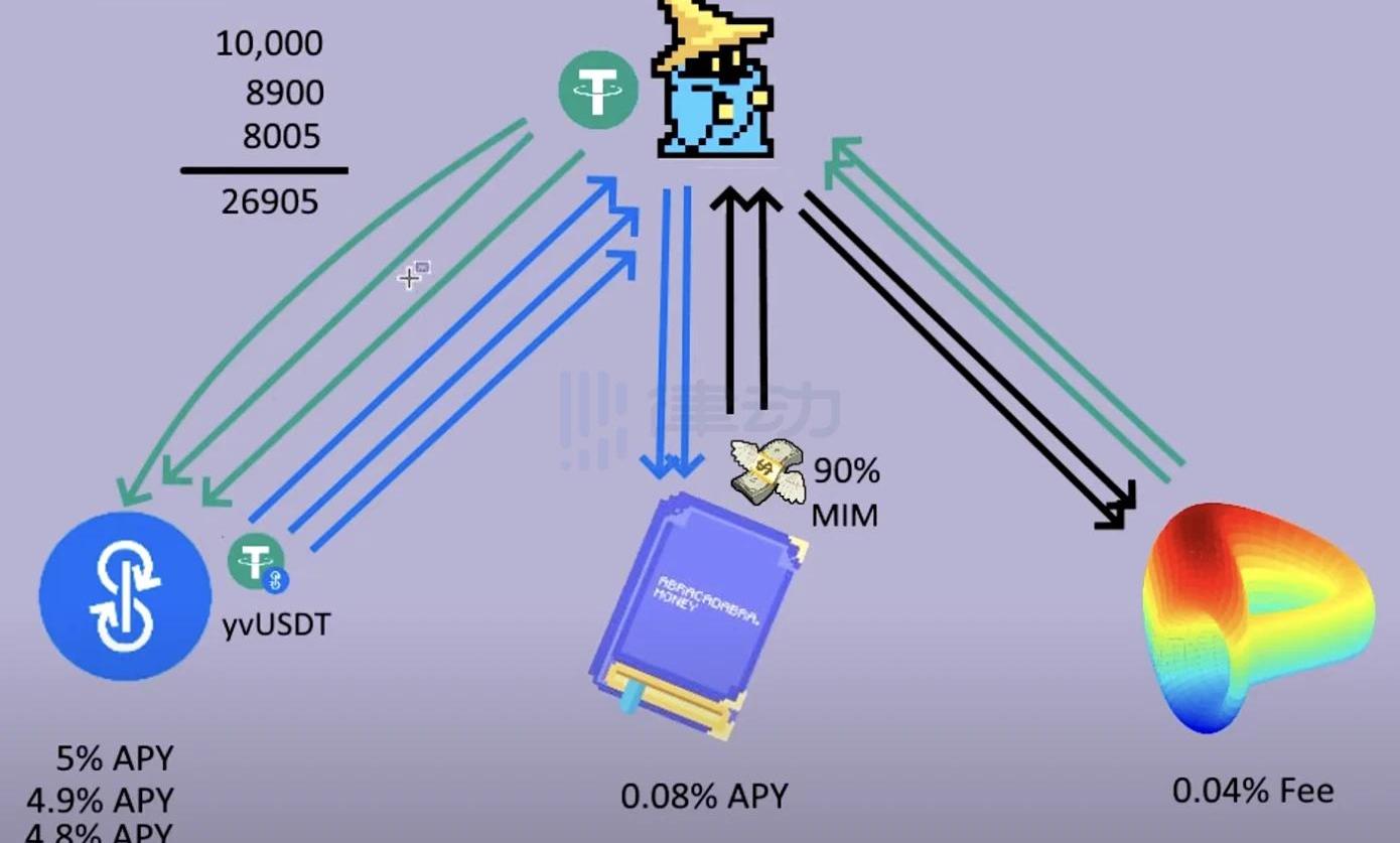DeFi在过去两年里已经有了长足的发展。现在,即使是在市场行情不好时,很多人也不会完全退出加密市场,而是选择持有稳定币。但是对一些DeFi新人来说,让稳定币为自己带来可观的固定收入一直是一个头疼的问题。在下文中,律动编者就为大家整理出了当前较为流行的几种稳定币Farming策略:金钱乐高:Yearn+Abracadabra+Curve