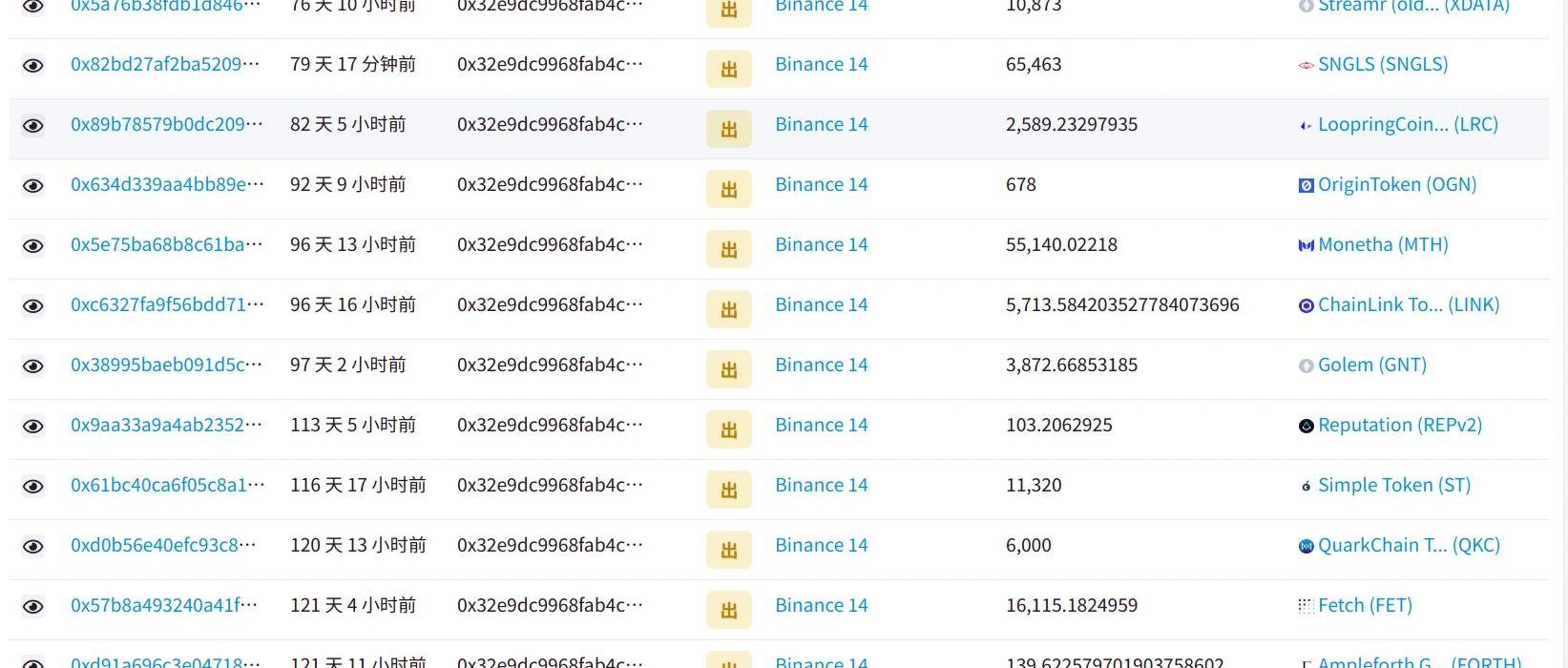 继续顺藤摸瓜可以发现,提币出来的ETH又转到了其他地址,在整个链路上继续深入,可以发现ETH被分散发到了很多地址,并有大量的ETH转入了币安的充币地址0x28c6c06298d514db089934071355e5743bf21d60至此,整个链路追踪在币安断开,如果能获取到币安kyc信息便可具体定位人员。