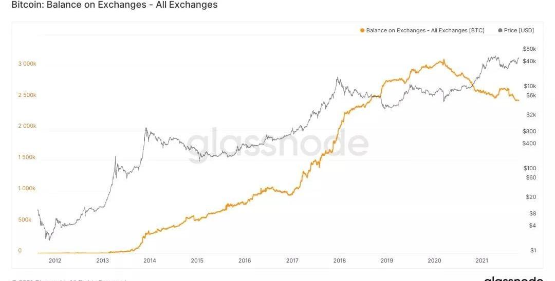 吴说作者|刘全凯本期编辑|ColinWu在6月20日,著名比特币多头PlanB基于改良后新的S2F模型预测了2021年可能出现的最坏情况:8月>47k,9月>43k,10月>63k,11月>98k,12月>135k。放到当下来看,PlanB在6月末的预测,在8月和9月的收盘价均展现出了超高的准确度。尽管此前他的最广为熟知的S2F模型在6月被证实失效,但是其在6月末作出的预测在近两个月被证实,一时之间“年底10万”的口号又重新燃了起来,投资者对PlanB的预测和比特币的未来又有了更多的期待。在国庆期间,10月2日,PlanB发推称再次强调牛市仍继续,通过链上数据分析,他猜测牛市的第二阶段至少还有6个月的时间。10月11日,比特币一度接近$58000,距离前高已并不遥远。本文将沿链上数据展开,通过数据分析,确定性的数据、结论和拐点来理性探讨牛市继续的可能性和潜在的干扰。数据一度程度上代表中长期的趋势与未来,本文不对任何短期波动背书。数据图表优先选用两家权威数据公司CryptoQuant和Glassnode。一:比特币供应短缺,正面临流动性枯竭