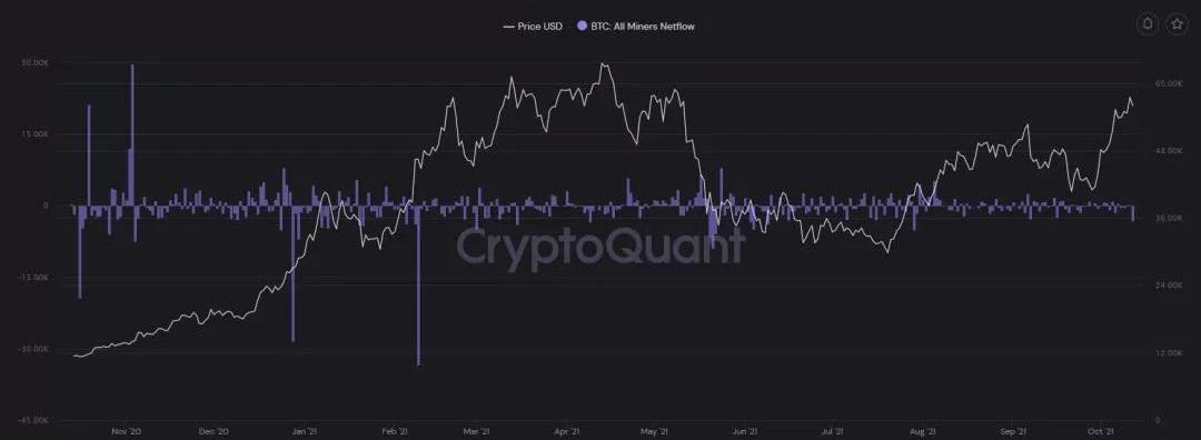 在今年中下旬,因国内政策限令因素,走在世界前列的享有广阔算力的国内加密挖矿行业迎来了重创。而在经历大规模转移和出海后,以及国外加密挖矿厂商的发力,比特币挖矿难度自7月末以来反弹达45.5%,当前挖矿难度大致与今年2月相当,全网算力正在逐步恢复。算力的恢复是对于比特币网络安全和强大共识的有力体现和保障。矿工净流出较为平稳,8月末后向交易所转移的量变得更小了