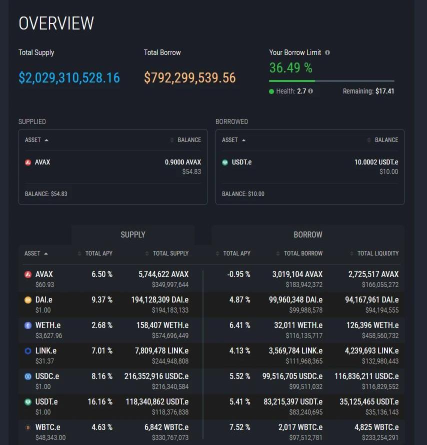 Benqi的产品界面整体比较简洁,中规中矩,相较于Qubit、BetaFinance,其展现的数据较少,仍有提升空间。