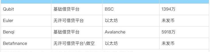 行业数据:https://debank.com/https://defillama.com/https://www.coingecko.com/项目信息:Qubit:https://qbt.fi/Euler:https://www.euler.xyz/BetaFinance:https://betafinance.org/Benqi:https://app.benqi.f文章和报道:三分钟读懂BetaFinance:AlphaFinanceLab孵化的DeFi衍生品市场解读借贷协议Euler:如何实现无许可上市及优化清算三分钟读懂Terra生态借贷协议MarsProtocolIntroducingEuler*如果以上内容存在明显的事实、理解或数据错误,欢迎给我反馈,我将对研报进行修正。