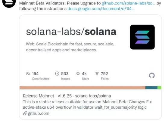 1、9月15日,SolanaStatus发布主网Beta1.6.25版本。该版本更新包括修复验证器wait_for_supermajority逻辑中的active-stakeu64溢出,以解决公链Solana的主网Beta版自北京时间9月14日开始出现不稳定的状况。据区块浏览器数据显示,Solana主网Beta网络已于9月15日恢复正常出块。