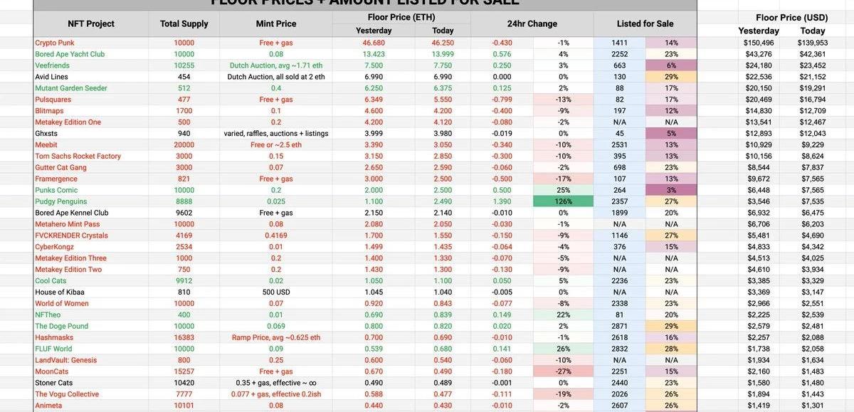 6.地板价原因:一个用于监控用户加入NFT社区的成本高低的有用指标注意:任何人也可以使用类似的应用程序加入高层社区推荐工具:@Zeneca_33的谷歌表格