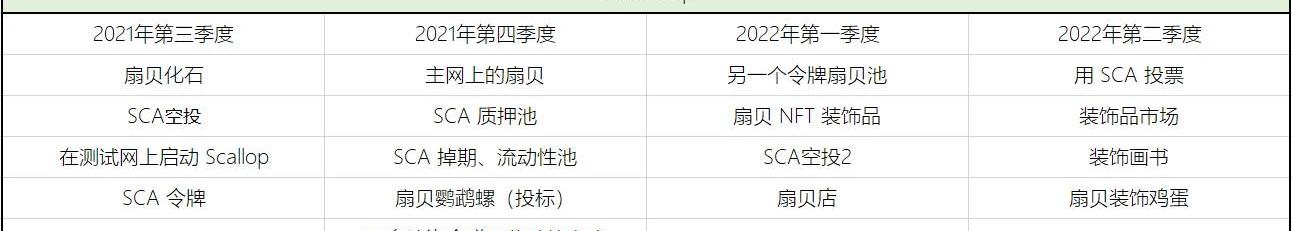 Playtoearn:质押SOL入场种植扇贝,每周五20:00为收获时间,程序随机抽取一名获奖者将获得ScallopToken等值的Staking奖励;也可以通过完成任务如一个月内加入10个池来获得代币或NFT装饰品的奖励。团队信息:KrisLai是亚洲最大网页游戏之一的资深安全工程师、Donnie拥有多年游戏开发经验、Larry曾任加拿大大型银行区块链实验室核心工程师,团队成员以和加拿大的华人为主。投资机构:暂时未开启融资。路线图: