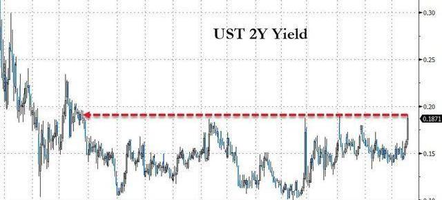 2年期美债收益率自去年6月以来首度升破0.2%。