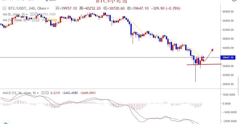 之前以太坊在上行的时候比特币一直没有较大的动静,即使上行力度相较于以太坊而言属于很平常,涨不上去就得下行了,我之前的分析中也一直跟大家说了虽然以太坊较为强势,但是比特币力度不是很大,后期行情出现回调可能性极大,这次的下调早期亦是有征兆,马斯克的言论只是点了一把火,加速了比特币的下跌,从最初的60000上方到30000关口,整整价格跌了一半,这说明大资金在进行疯狂的抛售,随后行情出现反弹,上面的消息面中也有所提及,目前大资金在底下再次进行了抄底,单纯从技术面上分析,短线上比特币出现了止跌迹象,小时线上处于低位震荡态势,4小时线上一波金针探底后行情也有反弹需求,至于大方向上行情依旧处于空头走势,日内重点关注下42000这个位置的阻力,行情首次触及该位置可以尝试布局下空单,下方目标也不宜过大,看到41000附近,之前比特币涨上去是以39500为依托开始上行的,现在能否重演让我们拭目以待,下方重点关注下38300,36500这两个位置的支撑,大家可以择机布局下多单。