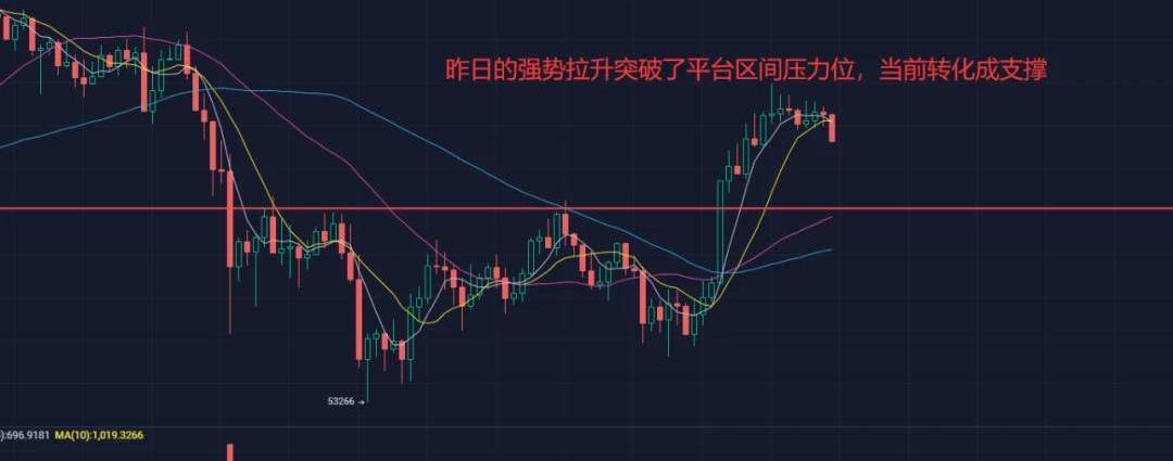 每天新增加100000个用户是什么概念?意味着一个月可能就有三百万的新增用户,但这个当然无法这样量化,毕竟在一定的程度以后会出现明显的滞涨过程,除非比特币的普及率真的到达非常高的地步,足以媲美传统金融市场的时候,月入三百万新增用户便不是梦。而目前这每天新增加的100000个用户大部分最终还是会分别流入到不同的数字货币交易平台上,若是如此对各大平台又是起到一个业务量增长的作用,届时平台币也会水涨船高。巧合的是,目前的几大平台币都在进行区间调整,甚至有所下跌,如果有上述预期的话,在平台币下跌之际关注甚至逐步介入的话也未尝不可。回到行情上,今天的行情又是“早八高”,八点的时候一度冲到59500美元上方,随后整体上是保持震荡,但就在三点二十分钟左右,行情突然开始加速回调,目前已抵达58000美元附近。从形态上看的话,昨晚美联储利率决议出来后,比特币跟随反弹,并强势突破了此前一直的压力位,该位置正好在57000美元附近,而当前的压力位已经转变成支撑位,因此,今天的回踩支撑关注57000美元。